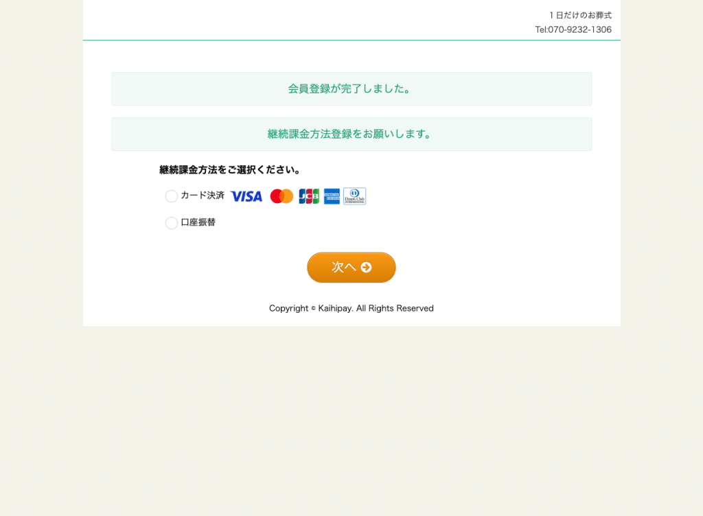 1日だけのお葬式サイトに掲載希望の業者様は、下記をお読みいただき、会費ペイから「1日だけのお葬式会員」へ入会後、基本情報入力フォームより入力の上送信ください。